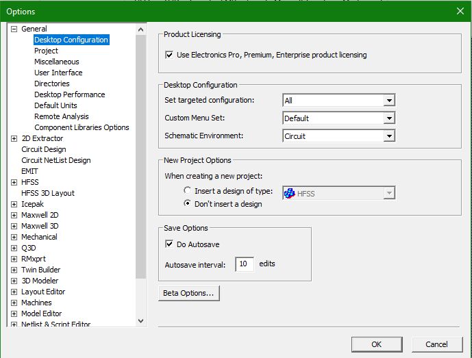 "Use Electronics Pro, Premium, Enterprise product licensing" - This option activates the new 2021.R1 license feature increments for the ANSYS electronic products.
