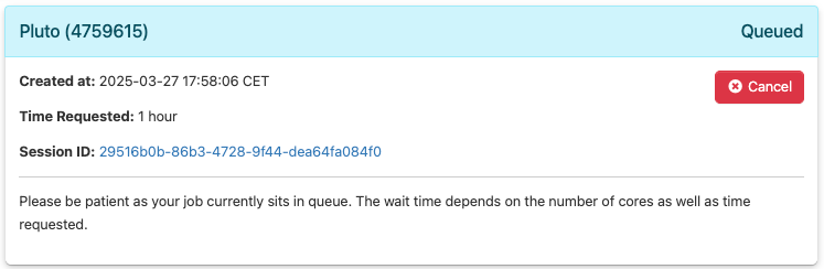 Next, you will be brought to the starting status page of the application. You need to wait as your job will be in the queue. The wait time depends on the number of cores as well as the time requested
