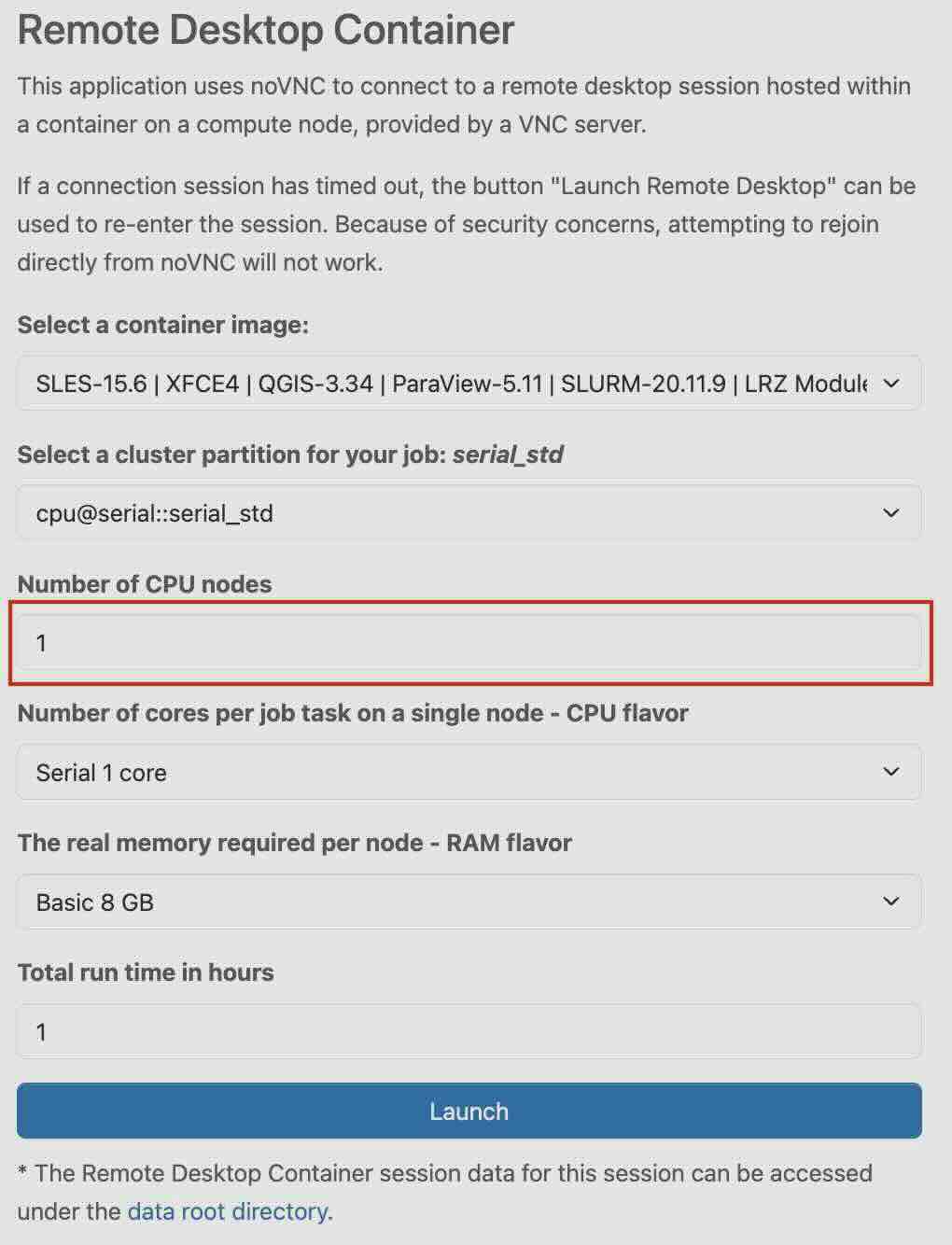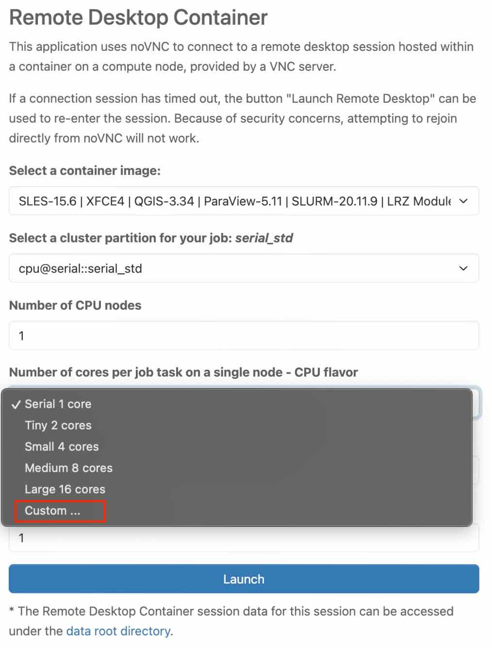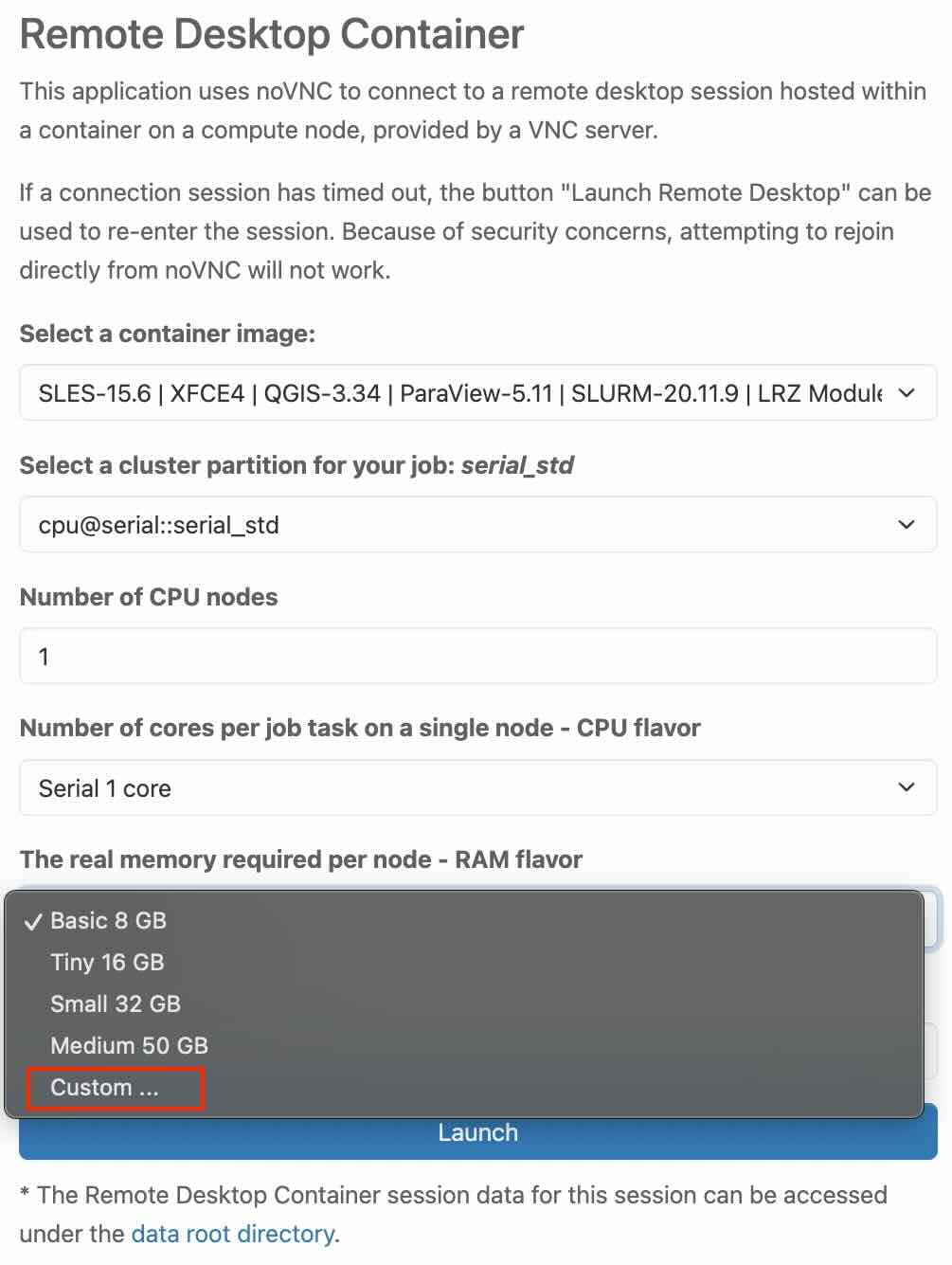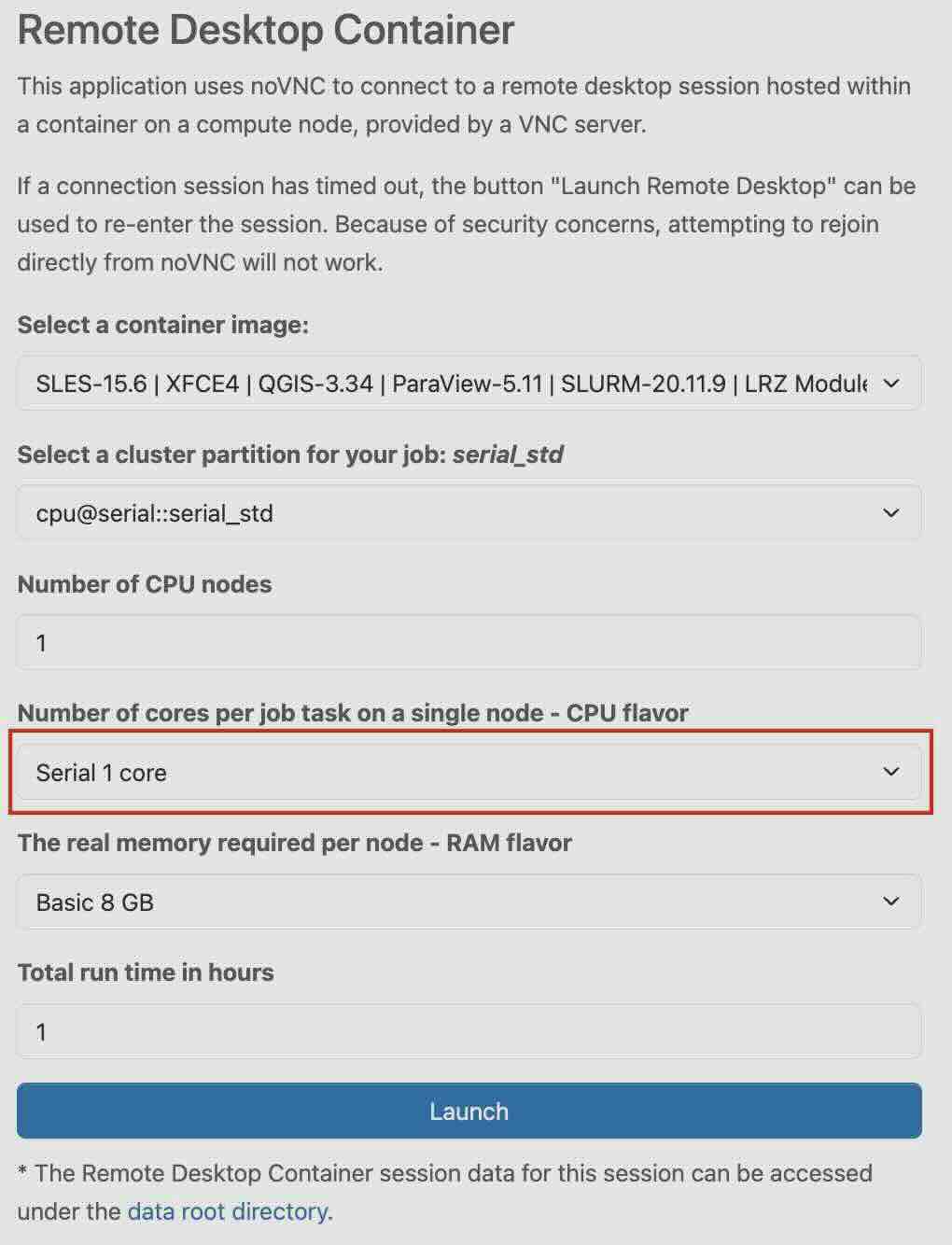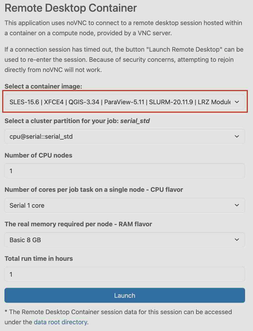 Once the resources are allocated, you can click on “Launch to Remote Desktop Container“ to log into the Remote Desktop Container.