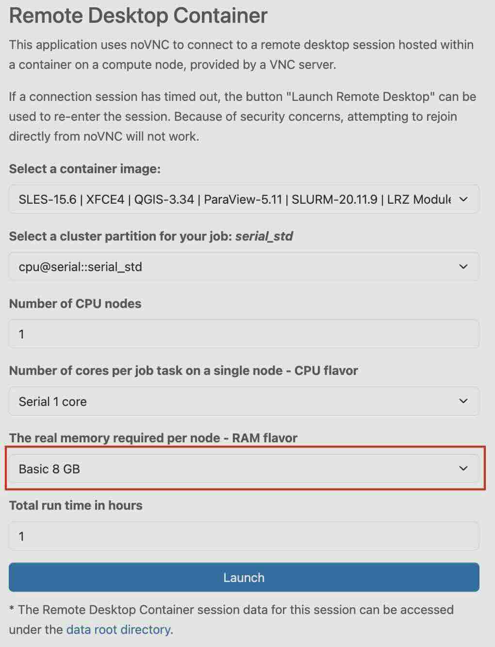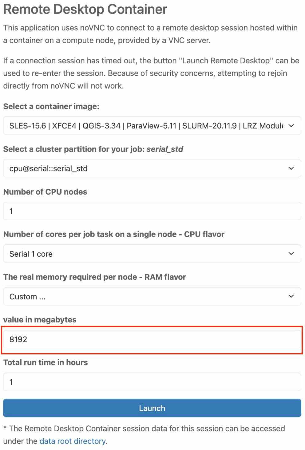 "value in megabytes" tab should appear as shown below, allowing you to enter the desired amount of RAM. Further information can be found under Job Processing on the Linux-Cluster documentation.