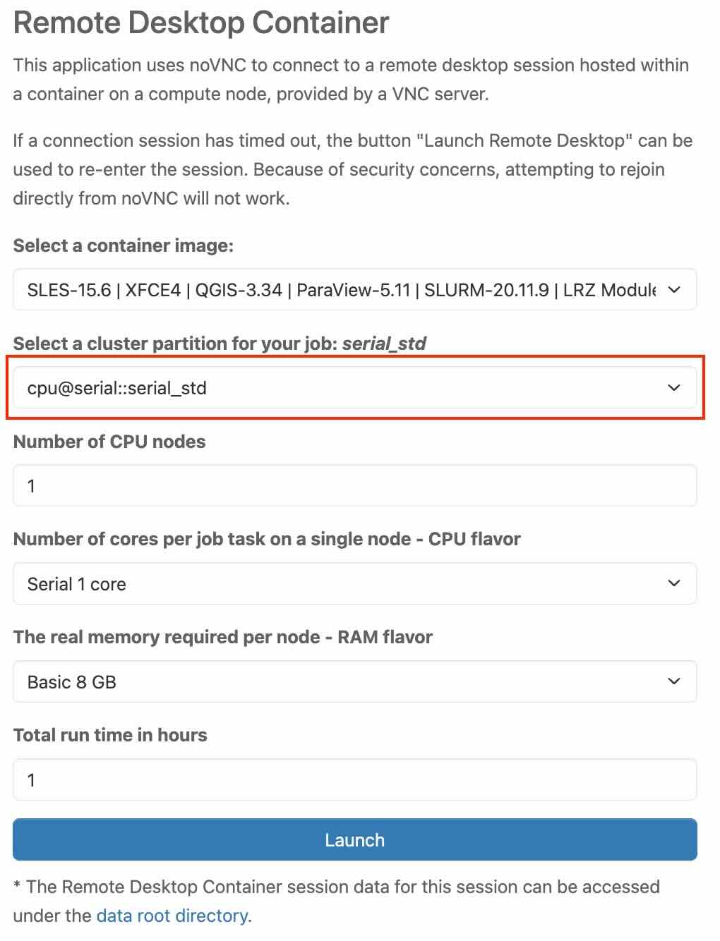 Select a cluster partition based on your requirements. Further information can be found under Job Processing on the Linux-Cluster documentation.