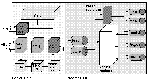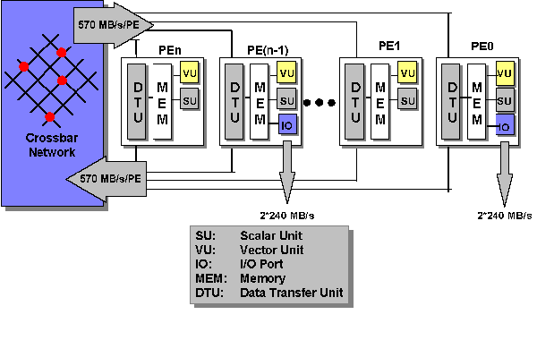Hauptbestandteile eines Prozessor-Elements sind die Skalareinheit (scalar unit, SU), die Vektoreinheit (vector unit, VU), der Hauptspeicher (main storage unit, MSU) und die Datentransfereinheit (data transfer unit, DTU). Beim primären PE und bei den IMPEs kommen noch Einrichtungen für Ein-/Ausgabe hinzu. Sowohl die Skalareinheit als auch die Vektoreinheit führen Gleitkomma-Arithmetik nach dem Standard IEEE-754 durch und sind damit mit den anderen Supercomputern des LRZ und mit Workstations kompatibel.