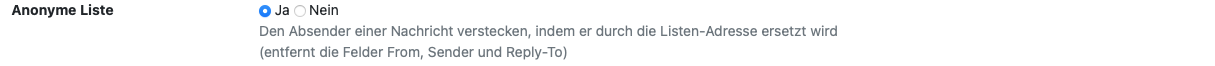 • E-Mails durch die Mailingliste anonymisiert werden: