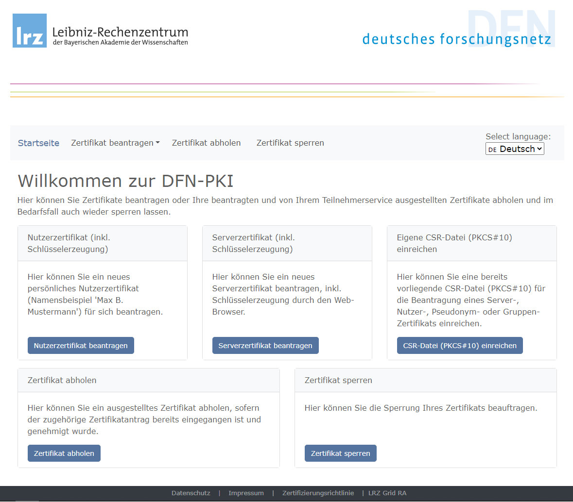 sowie auf der GRID-Seite des DFN-Vereins: https://doku.tid.dfn.de/de:dfnpki:grid