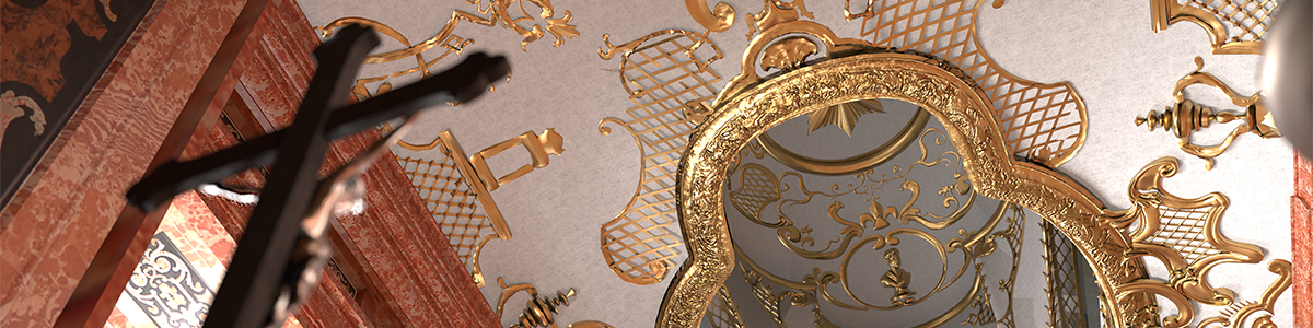 Um den Detailreichtum der realen Kammerkapelle voll auskosten zu können, wurde das 3D-Modell der Studenten überarbeitet, fehlende Elemente modelliert und die Texturen ersetzt. Mit der Nachmodellierung des ornamentalen Stuckreliefs verkörpert nun auch die Deckenpartie der digitalen Kammerkapelle das Aussehen barocker Bauwerke.