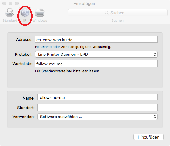 Einrichten von Druckern für das Follow-me-Printing unter macOS