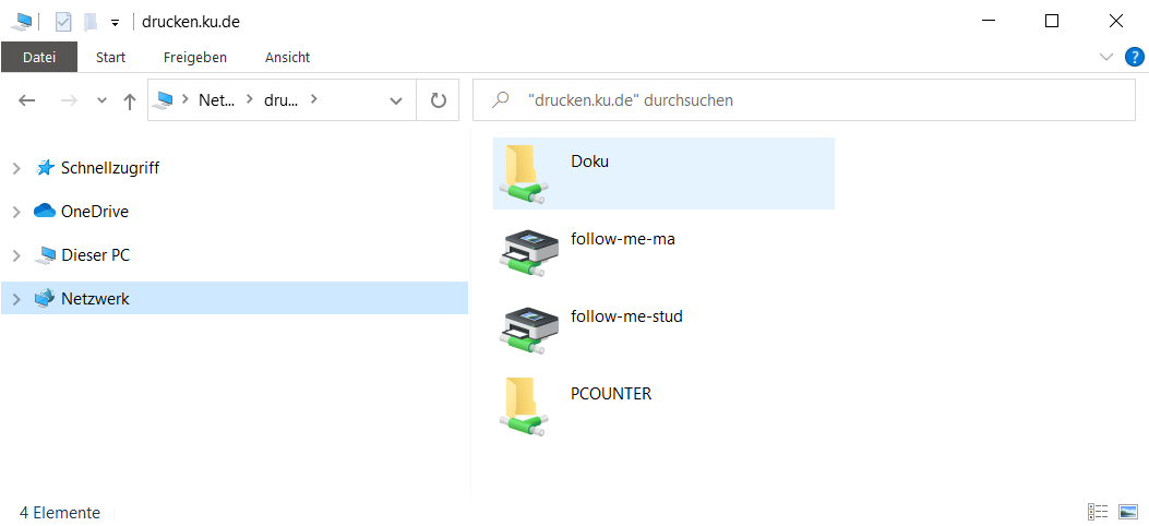 Im Windows-Explorer erscheinen dann zwei Druckertreiber: "follow-me-ma" für Mitarbeiter und "follow-me-stud" für Studierende.