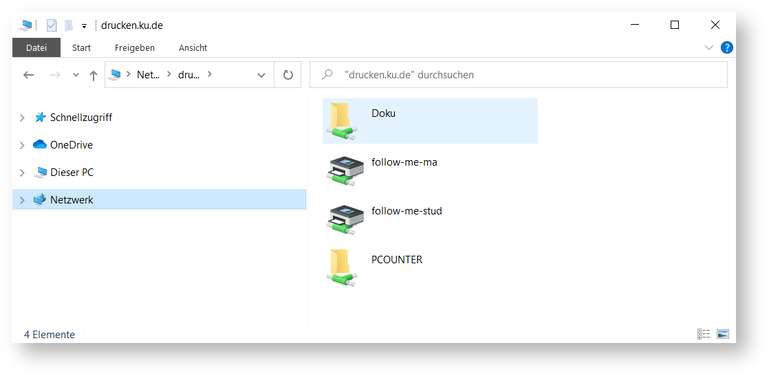 4. Geben Sie in der Leiste "\\drucken.ku.de\" " ein und drücken Sie auf die Eingabetaste (als Alternative zu "\\drucken.ku.de\" können Sie auch "\\eo-vmw-wps\" eingeben)