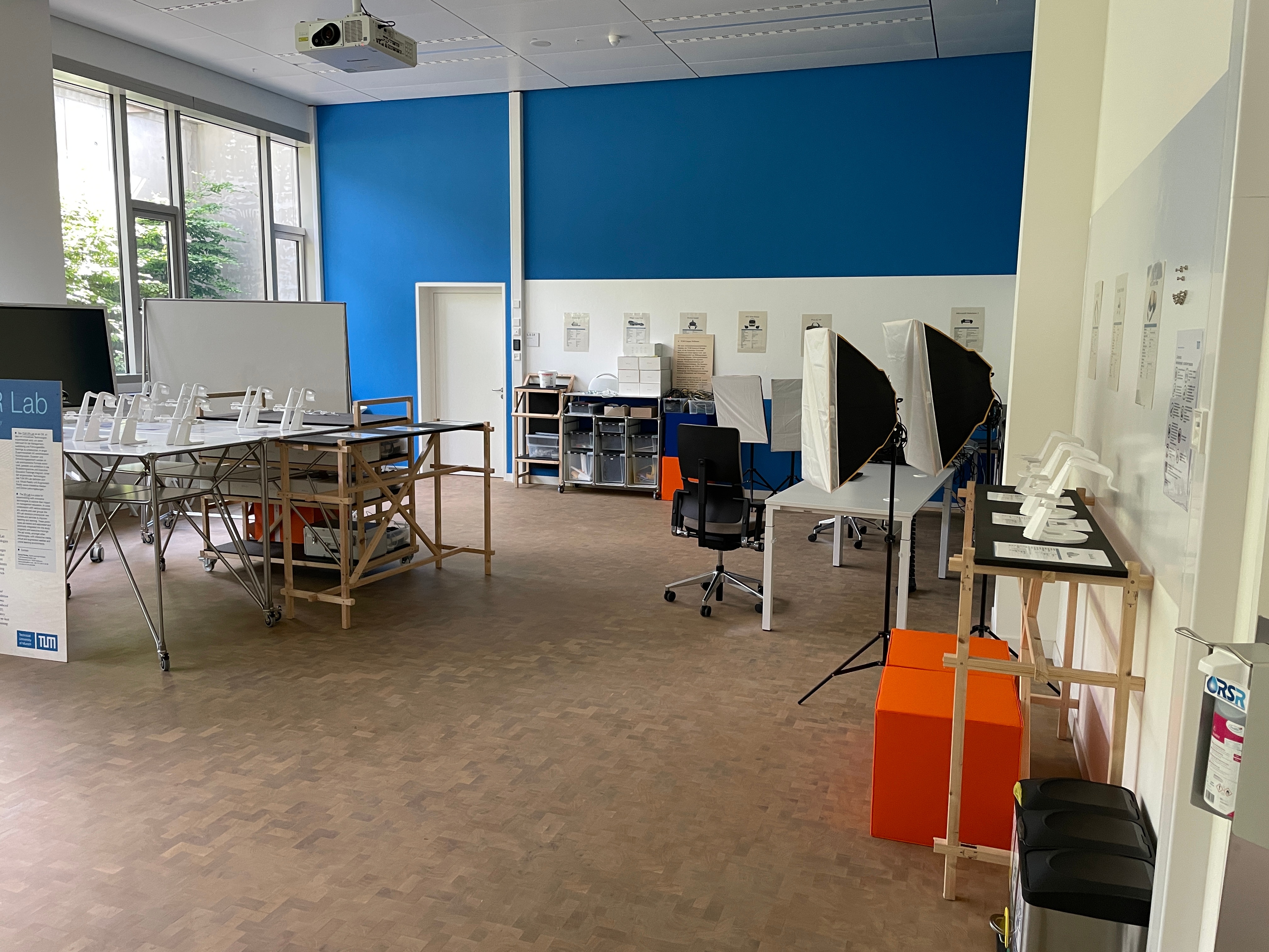 Technical equipment: projector, mobile screens, PC workstation (login with TUM ID)