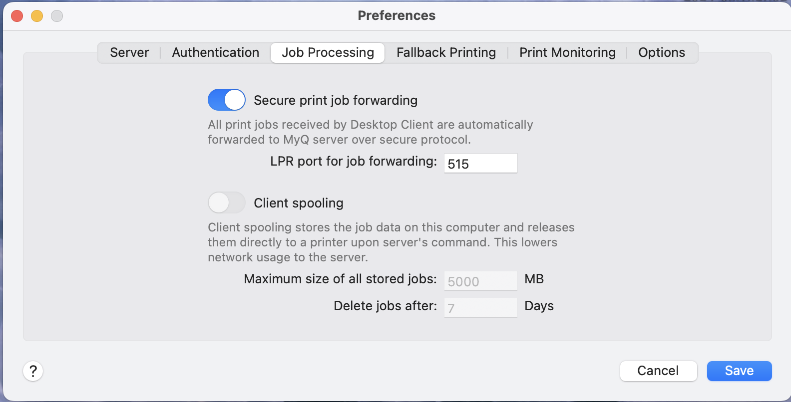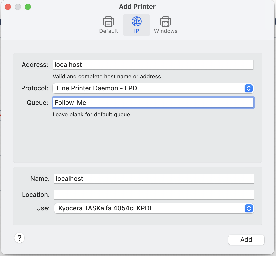 5. Address:localhost (the printjobs will be picked up by the myq client)