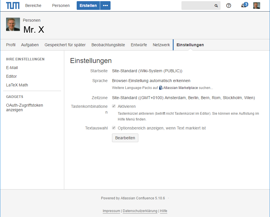 Schritt 1: Loggen Sie sich mit Ihrer TUM-Kennung sowie Ihrem TUM-Passwort in Ihrem Wiki-Bereich ein.