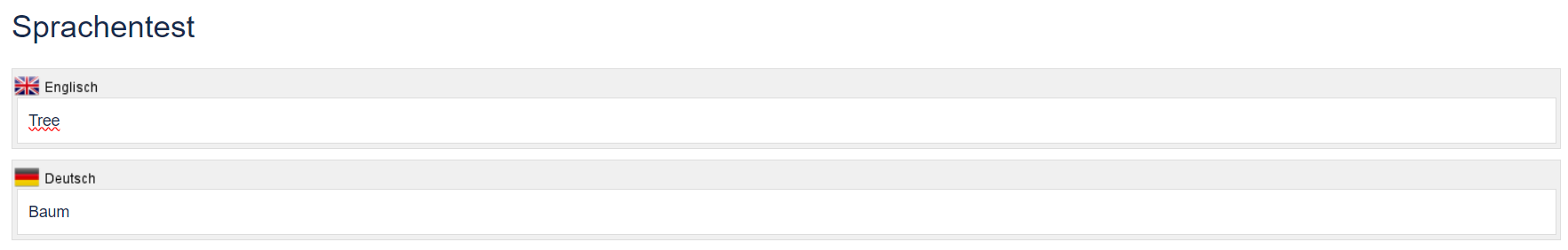Dropdownmenü zur manuellen Auswahl der in der Seite "Sprachentest" enthaltenen Sprachen "deutsch" und "englisch"