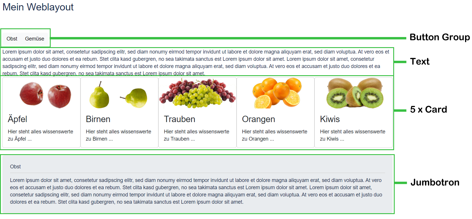 Ziel: Eine Seite "Mein Weblayout", die einige Elemente einer klassischen Webseite enthält und wie folgt aufgebaut ist: