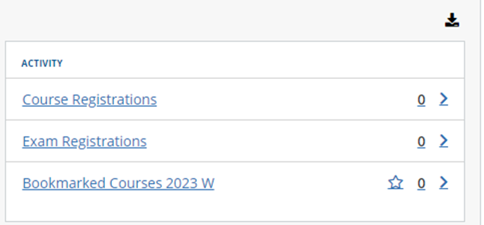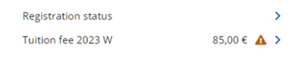 By clicking on the arrow icons in the “My current status” area, you can see unpaid tuition fees and information regarding your registration status.