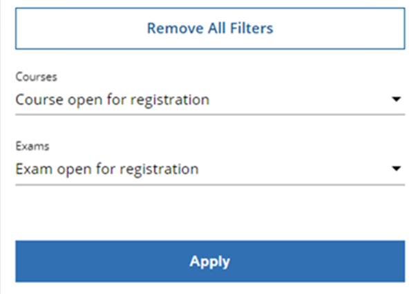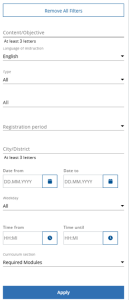 You can further refine the filter by using the filter options in the Courses application; e.g. select the teaching language “English”: