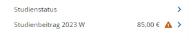 In „Mein aktueller Status“ können über die Pfeil-Icons offene Beträge und Informationen zum Studienstatus aufgerufen werden.