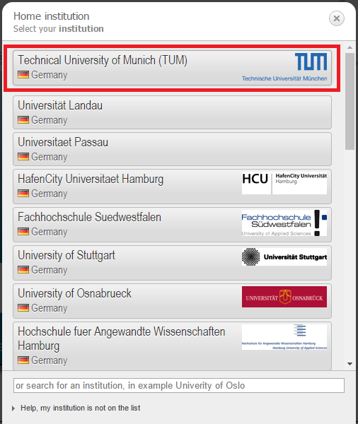 In the next step select as home institution "Technical University of Munich (TUM)".