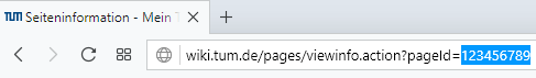 - Klicken Sie mit der Maus in die Adresszeile Ihres Browsers. Sie bekommen nun die Page-ID am Ende der URL angezeigt.