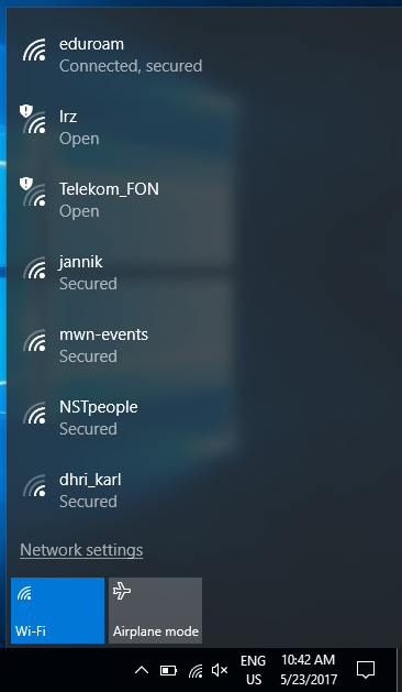 On campus click on the Wi-Fi icon bottom right and open the Wi-Fi "lrz".