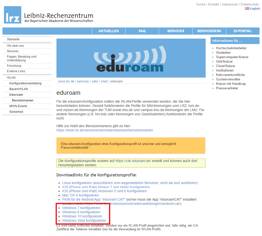 Open https://www.lrz.de/services/netz/wlan/eduroam/ an select the needed configuration profile.
