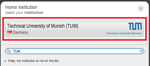 In the next step select as home institution "Technical University of Munich (TUM)".