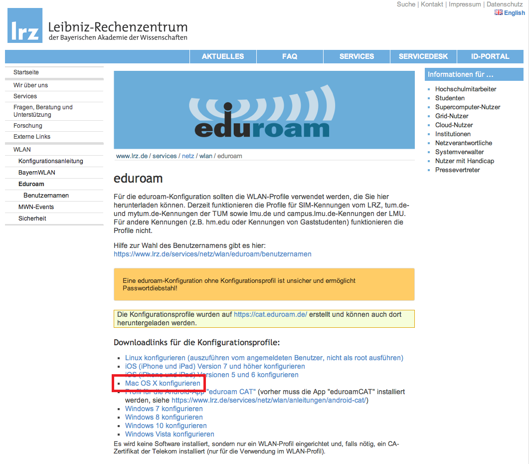Open the website https://www.lrz.de/services/netz/wlan/eduroam/ .