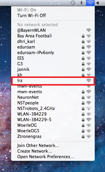 Connect the open Wi-Fi "lrz" by clicking on it.