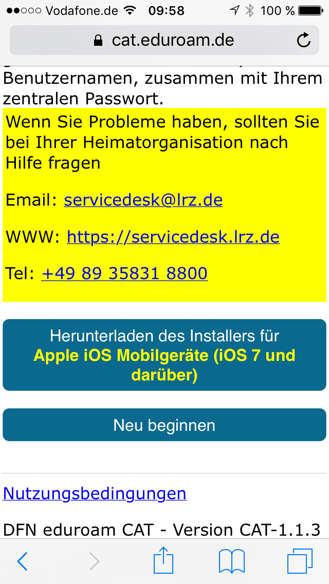 Screenshot: Bestätigen des "Installers" Ansicht iPhone