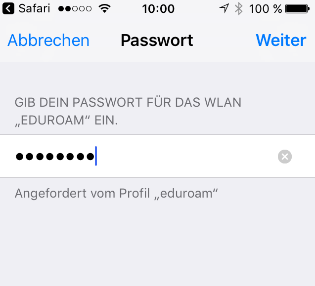Tragen Sie den Benutzernamen wie angegeben ein und Ihr Gerät verbindet sich automatisch, an jedem Standort an dem eduroam verfügbar ist, mit dem eduroam!
