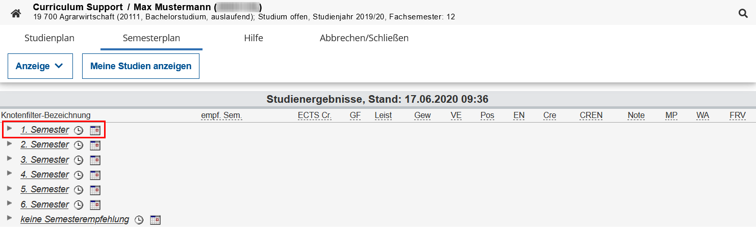 In der Semesterplan-Ansicht der