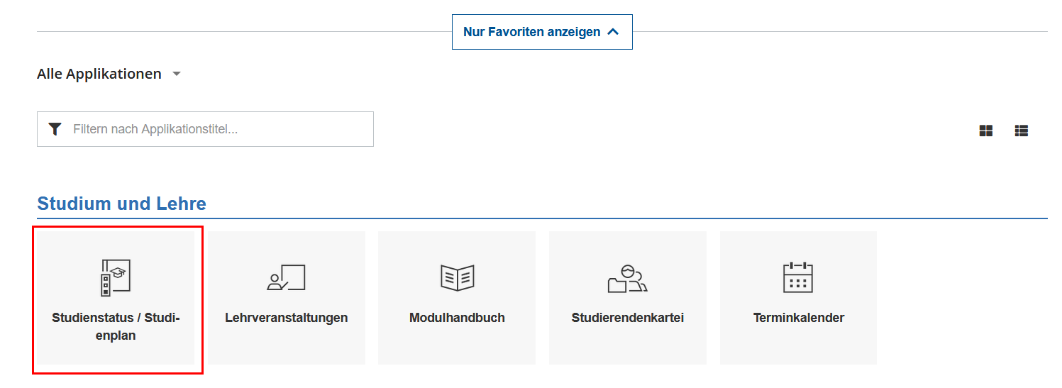 Klicken Sie auf die Applikation „Studienstatus / Studienplan“: