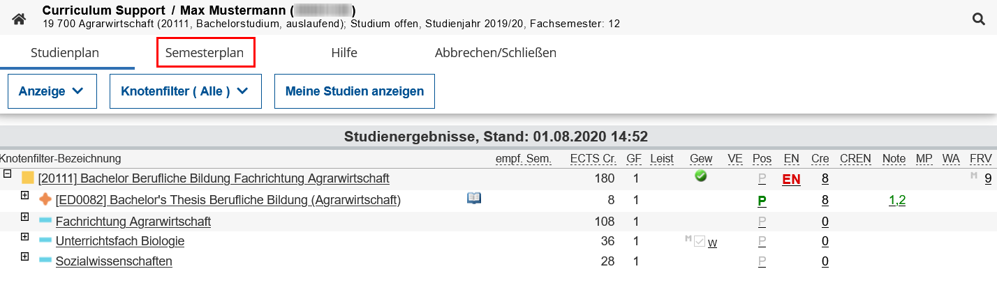 Die Semesterplan-Ansicht öffnet sich.