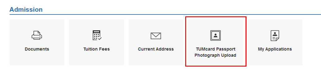 Click on the application “TUMcard Passport Photograph Upload” to upload your photo: