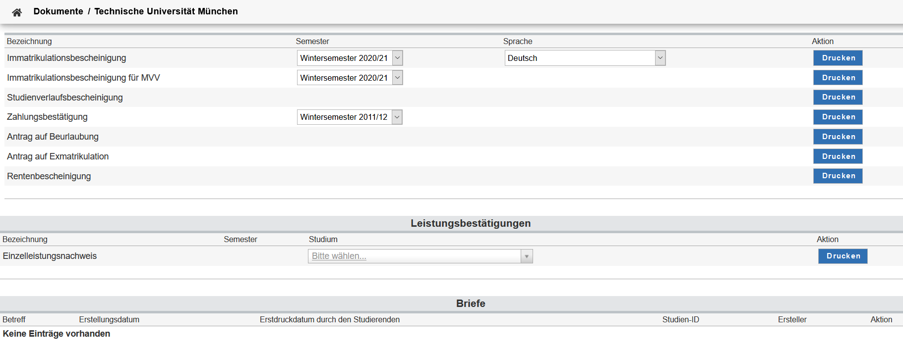 Darüber hinaus finden Sie hier ggf. Leistungsbestätigungen und Briefe aus der Studierendenverwaltung.