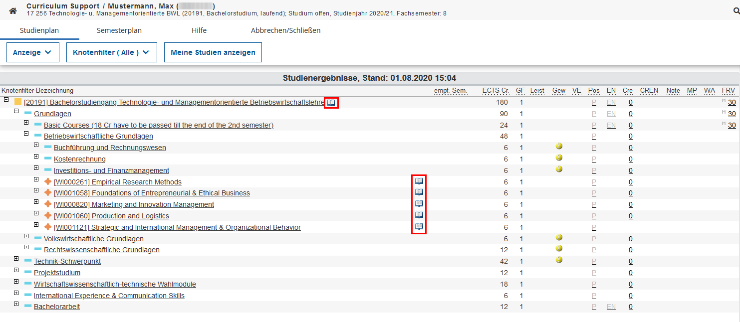 Screenshot: Modulbeschreibungen im Studienplan finden