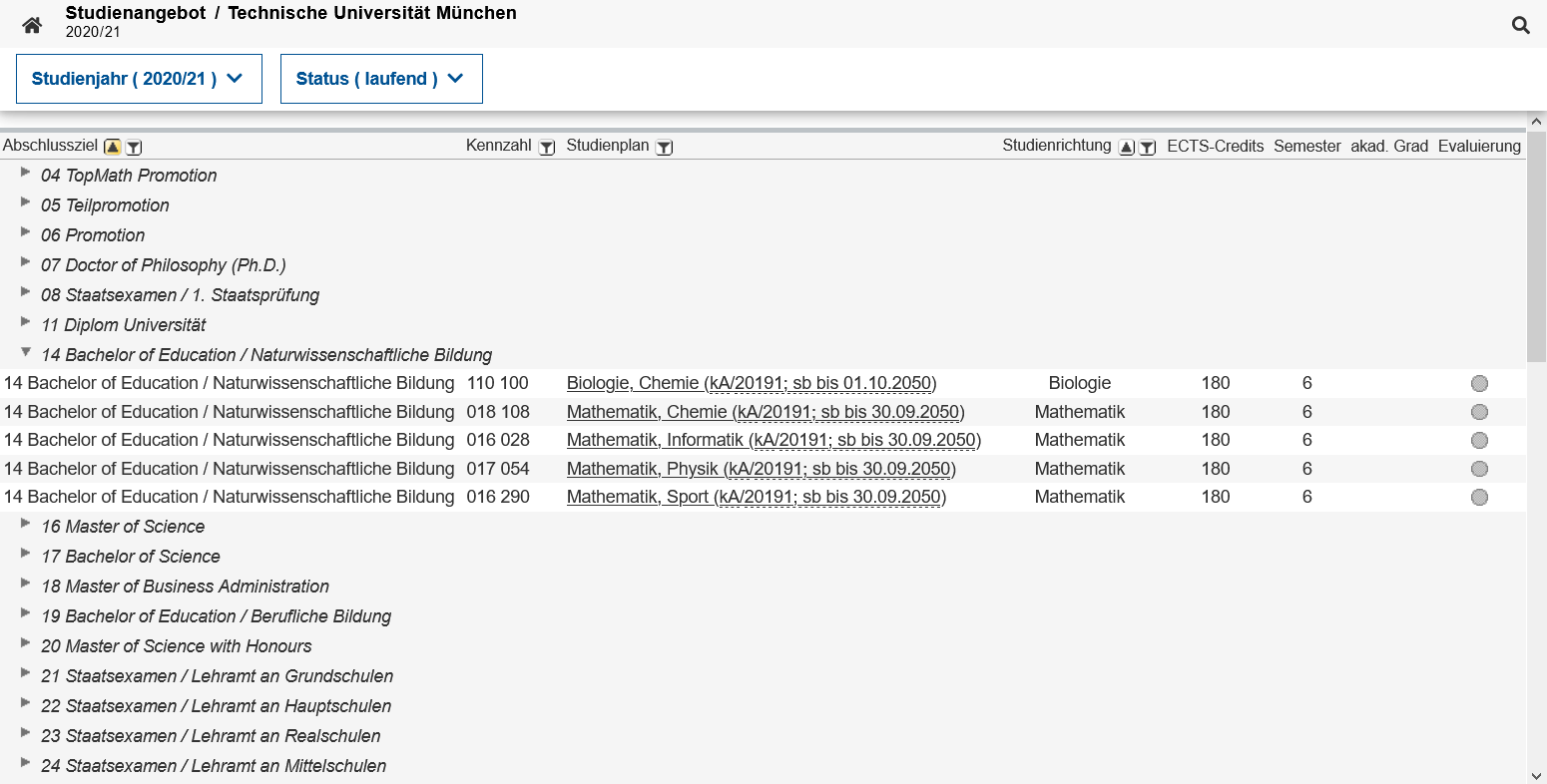 Klicken Sie auf eine der Kategorien und anschließend auf einen Studiengang, um sich den zugehörigen Studienplan anzeigen zu lassen: