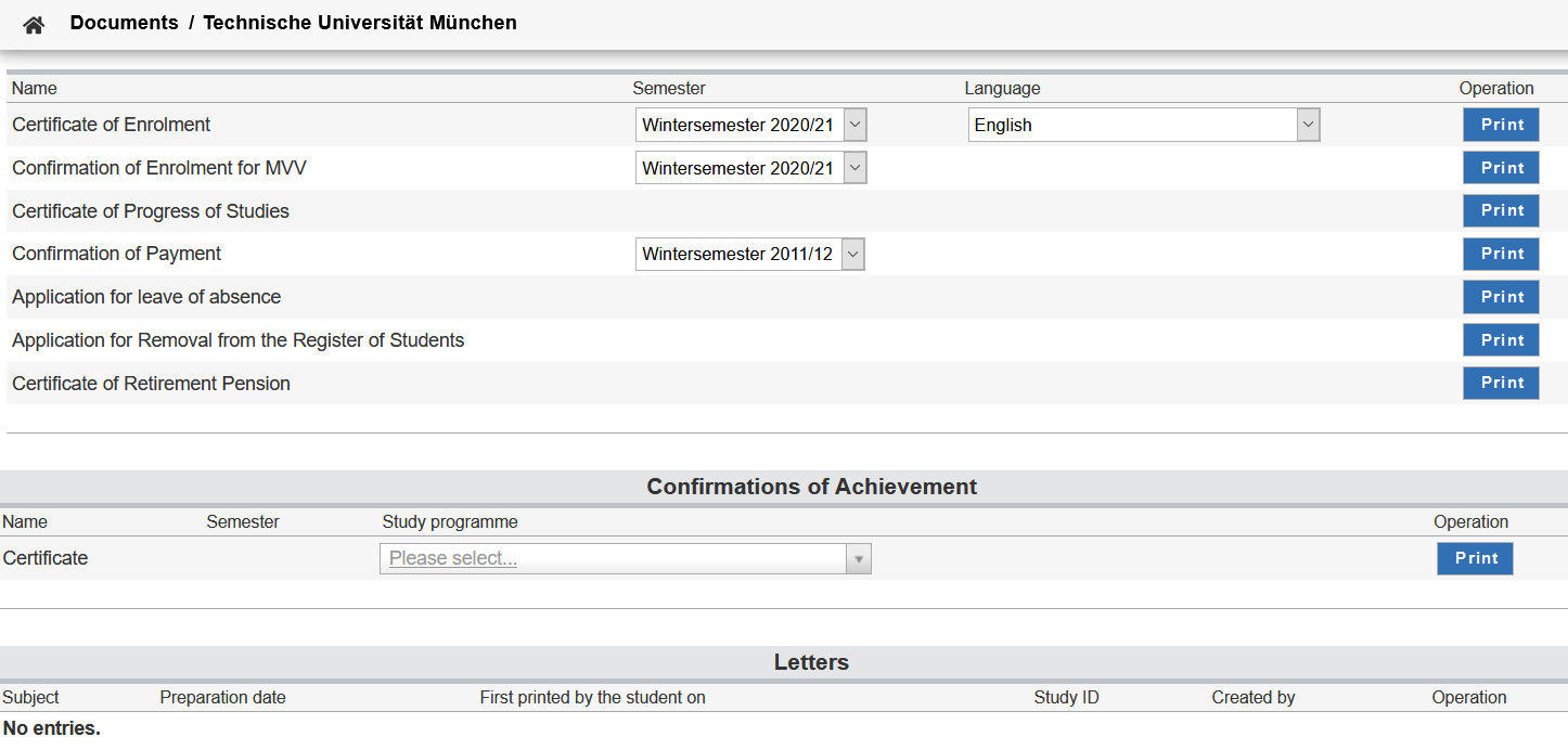 If the application still does not appear or if you are experiencing difficulties downloading your documents, please contact studium@tum.de and provide a detailed description of the problem.
