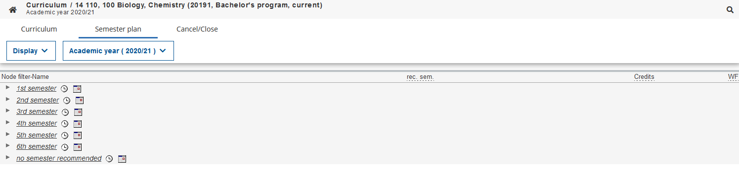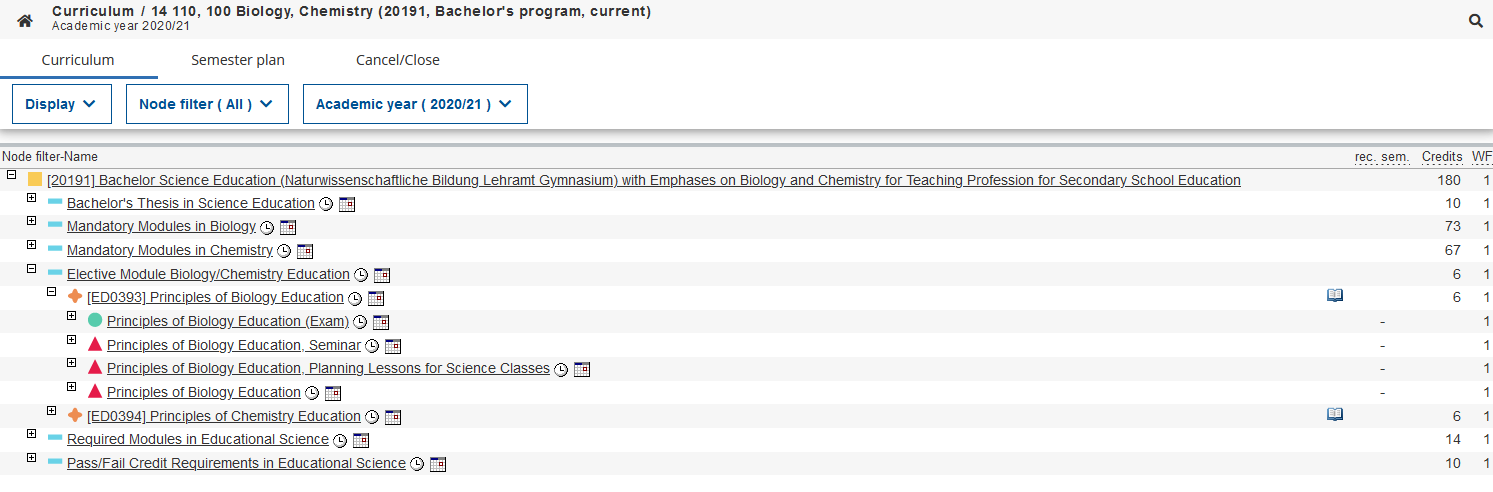 In this application, you can switch between the curriculum and the semester plan view.