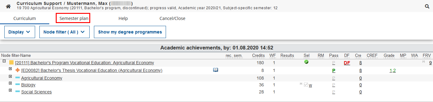 Under “Curriculum Support” you will then see the curriculum tree with all modules, courses and exams.
