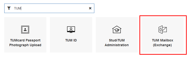 Tip: If you have set up an exchange mailbox, you can quickly and easily access your e-mails in TUMonline by clicking on the application “TUM Mailbox (Exchange)”.