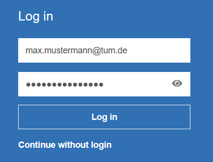 There, log in with your user name, your TUM e-mail address (e.g. max.mustermann@tum.de) or TUM ID (e.g. gu27cat) and your chosen password: