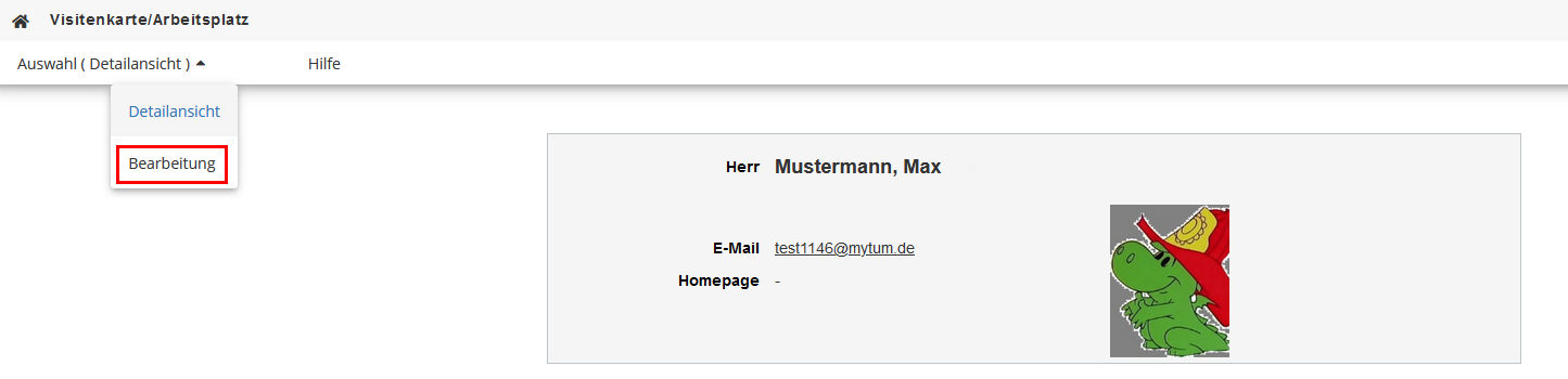 Klicken Sie auf Ihren Namen oben rechts und auf den Link „Visitenkarte“: