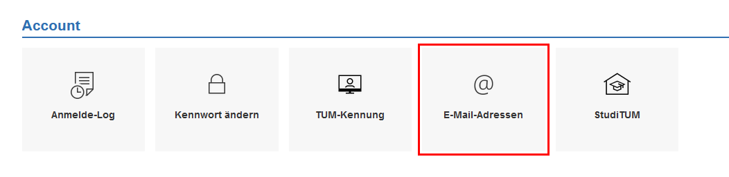 „TUM-Mailbox (Exchange)“ | Sie können sich eine Mailbox im Exchange System der TUM einrichten. Ihre E-Mails werden dann an die Exchange Mailbox weitergeleitet und Sie können sie unter dem Link https://mail.tum.de/ nach dem Einloggen mit Ihrer TUM-Kennung (z. B. ga53xez) und Ihrem Passwort abrufen. |