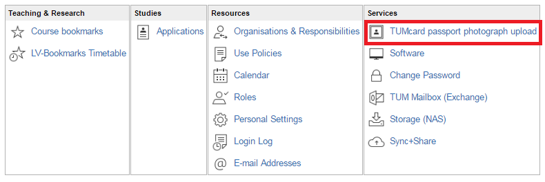 Click on „TUMcard passport photograph upload“ to upload your photo.