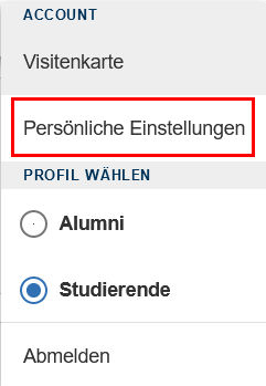 Mit Klick auf „Persönliche Einstellungen“ öffnet sich folgende Seite: