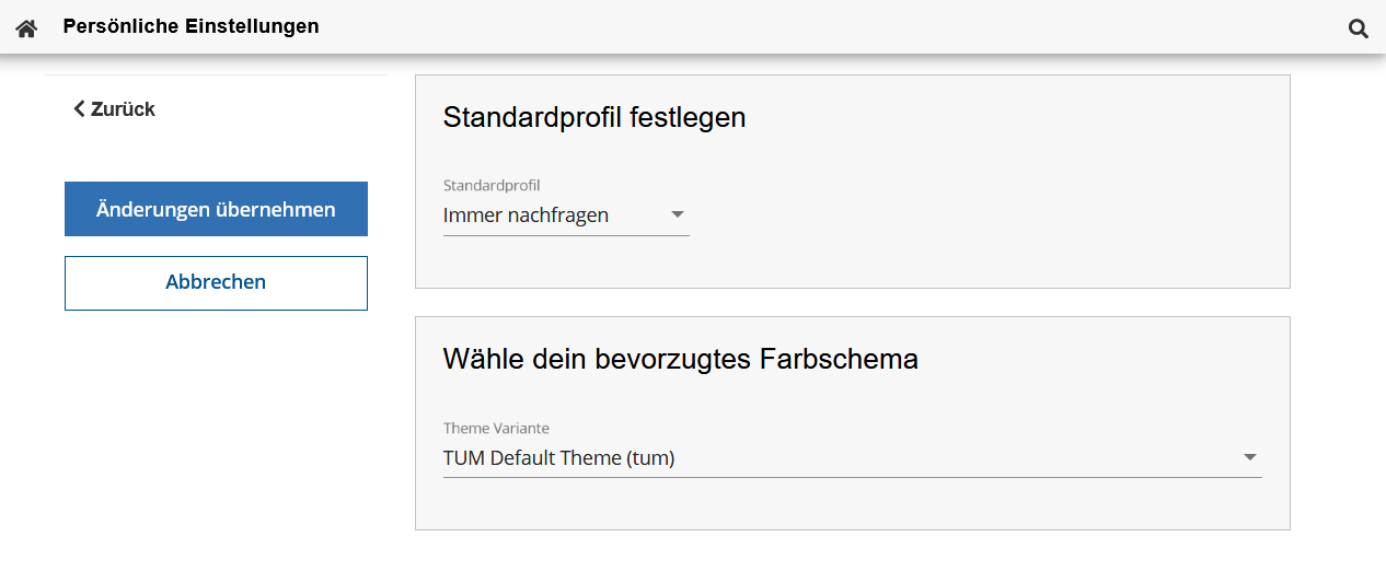 Standardprofil | Wenn Sie mehr als ein Profil (z. B. Studierende und Alumni) haben, können Sie festlegen, mit welchem Profil Sie nach dem Anmelden TUMonline nutzen wollen. Zur Auswahl stehen: