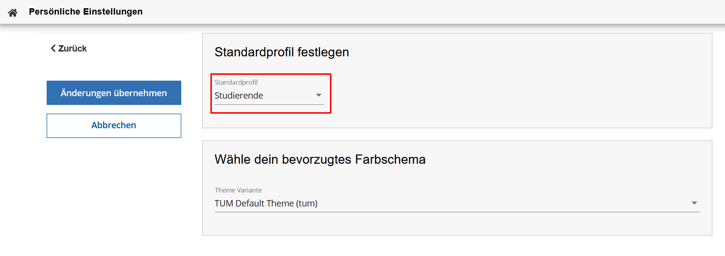 Wählen Sie das Standardprofil aus und speichern Sie die Eingabe mit dem Button „Änderungen übernehmen“: