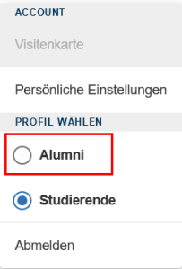 Screenshot: Profilwechsel-Seite