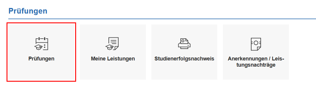 Klicken Sie auf die Applikation „Prüfungen“ und wechseln Sie in den Reiter „Meine Prüfungen“.