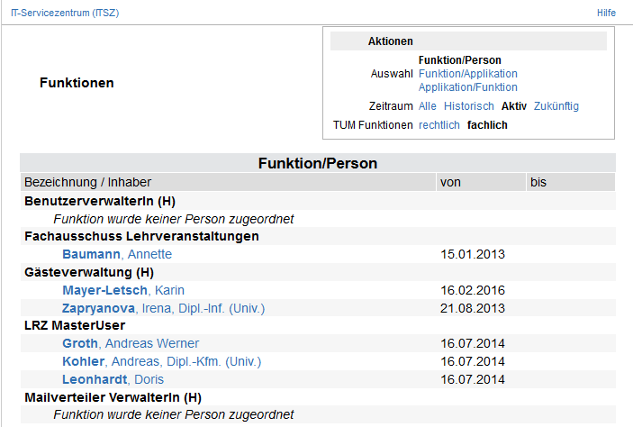 Screenshot: Organisation - Liste der Funktionsinhaber